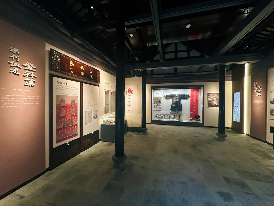 在展厅改造上,突破以往展陈的传统空间结构,突出古建原有梁架构件,通过光影布局、传统色彩和创意造型,契合人物特征,营造具有空间意境的展厅环境。