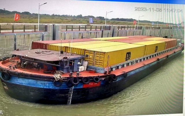 “这里是船闸调度中心,嘉港**集装箱船舶在派河口服务区外航标附近偏离航道不慎搁浅,经自救仍无法脱困,需要紧急救助。”11月5日上午10时许,市交通执法支队肥西大队派河船闸中队执法人员接到船闸调度中心来电,立即赶往事发水域现场。