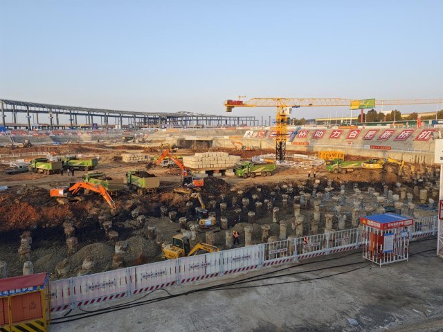 近日,记者从安徽路桥获悉,合肥新桥国际机场综合交通中心(含轨道引入)及配套工程项目,正在24小时不间断的进行桩间土开挖、桩头破除、筏板基础开挖浇筑、塔吊安装,标志着项目正式进入主体施工阶段。