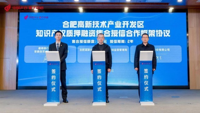 活动现场,区市场局与合肥高创股份有限公司、徽商银行自贸区支行签署知识产权质押融资集合授信合作协议,园区企业获得2年3个亿的知识产权质押融资授信。