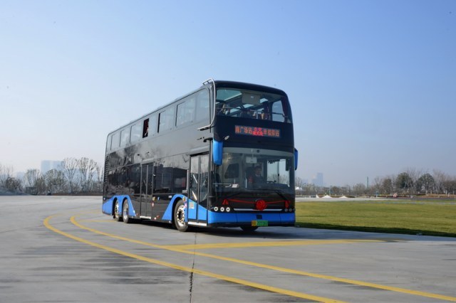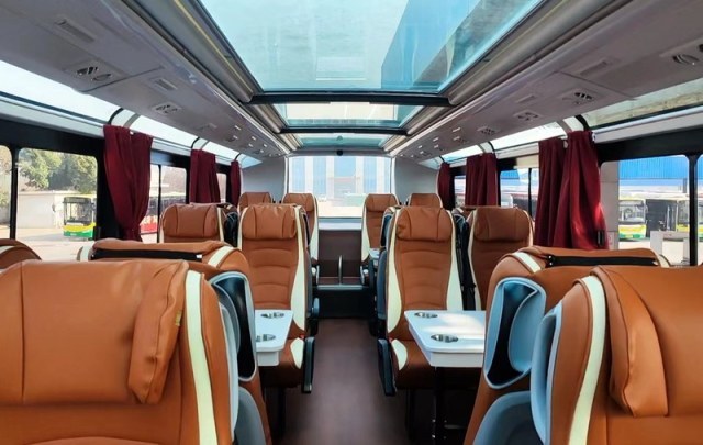 合肥公交集团纯电动双层巴士配有全景天窗和桌案,视野开阔,乘坐舒适。