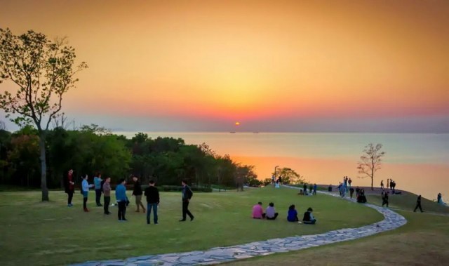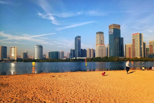 天鹅湖人工沙滩。