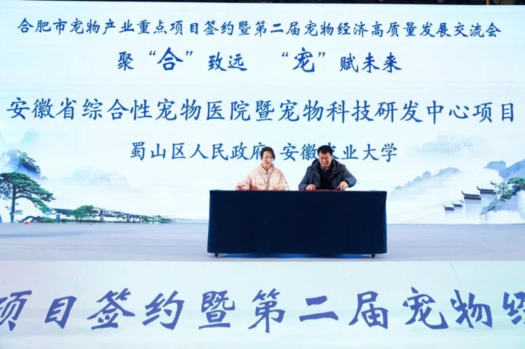 在主题报告环节,中国农业大学教授、中国宠物医疗行业大会主席林德贵作了题为《中国宠物经济现状与未来发展趋势》的报告,深入剖析了宠物经济的发展现状与未来走向;中国出入境检验检疫协会宠物产业工作委员会副会长邓荣臻、安徽农业大学动物医学院院长孙裴、上海畜牧兽医协会小动物医疗分会会长牛光斌以及天津雀巢普瑞纳宠物食品有限公司总经理包永安等行业专家,分别围绕宠物产业发展趋势、园区建设、动物医学学科服务宠物经济、宠物医疗行业发展及宠物食品现状等主题进行分享,为与会者提供行业洞察与前沿信息。签约仪式上,安徽省综合性宠物医院暨宠物科技研发中心项目、欧莎新型宠物用品产业链项目、宠物健康研究联合实验室项目等成功签约,为合肥市宠物经济的发展注入了新的活力与动力。